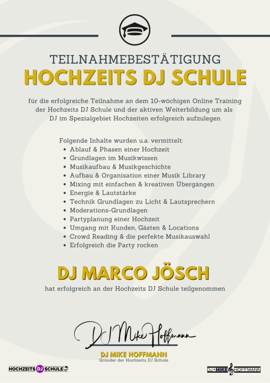 Schon seit über 20 Jahren bin ich mit Leib und Seele dabei, wenn es darum geht, Hochzeiten und Events unvergesslich zu machen. Für mich ist Musik mehr als nur Töne. Sie ist Emotion, Verbindung und das Herzstück jeder Feier.